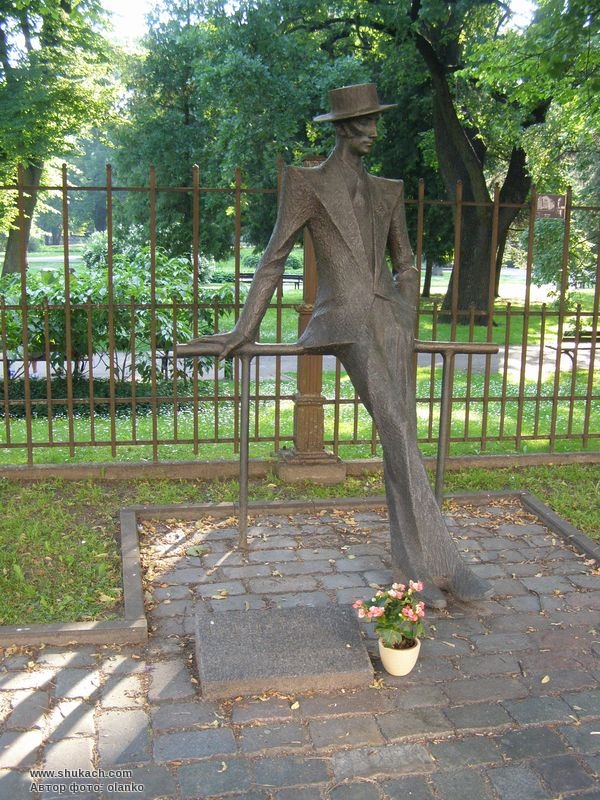 На вулиці Меркеля біля чавунної огорожі Верманського саду під липами, де перед Другою світовою війною в 1933 і 1934 роках проходили виставки картин К. Падега «в дикій природі», скульптура Карліса притулилася до горизонтального елементу стилізованої огорожі. У костюмі, в крислатому капелюхі на голові і квіткою в лацкані — такий образ суспільства художників 20 століття. У 1930-ті роки він знав цього екстравагантного живописця та графічного дизайнера.
