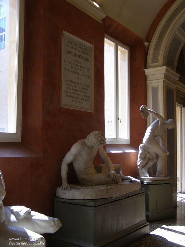 Комплекс зведений за проектом архітектора А.Тореджані у 1728-1735 роках для розміщення церкви Сан-Ігнаціо і монастиря єзуїтів. У 1803 році тут розміщені пінакотека і академія мистецтв, що була заснована у 1710 році під назвою Accademia Clementina. Раніше вона знаходилась в палаццо Поджі. Картинна галерея має величезну колекцію робіт з 13-го до 18-го століть. В коридорах пінакотеки виставлена велика колекція скульптур. На внутрішньому подвір’ї пам’ятник герцогу Курляндії роботи А.Вентуролі і Г. де Марія (1786) та колодець Ф.Террібілія (1586), який раніше знаходився в Орто деі Семплічі в Палаццо Коммунале.