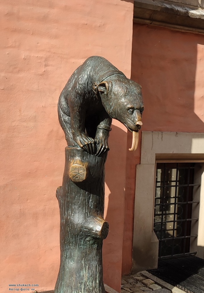 За деякими даними, це малайське ведмежа. Його зріст близько півтора метра, важить майже триста кілограмів. Історичні джерела розповідають, що берлінський художник Ернст Мортіс Гейгер вирішив виготовити його, коли з подивом побачив, що на Ринковій площі у немає фонтану.