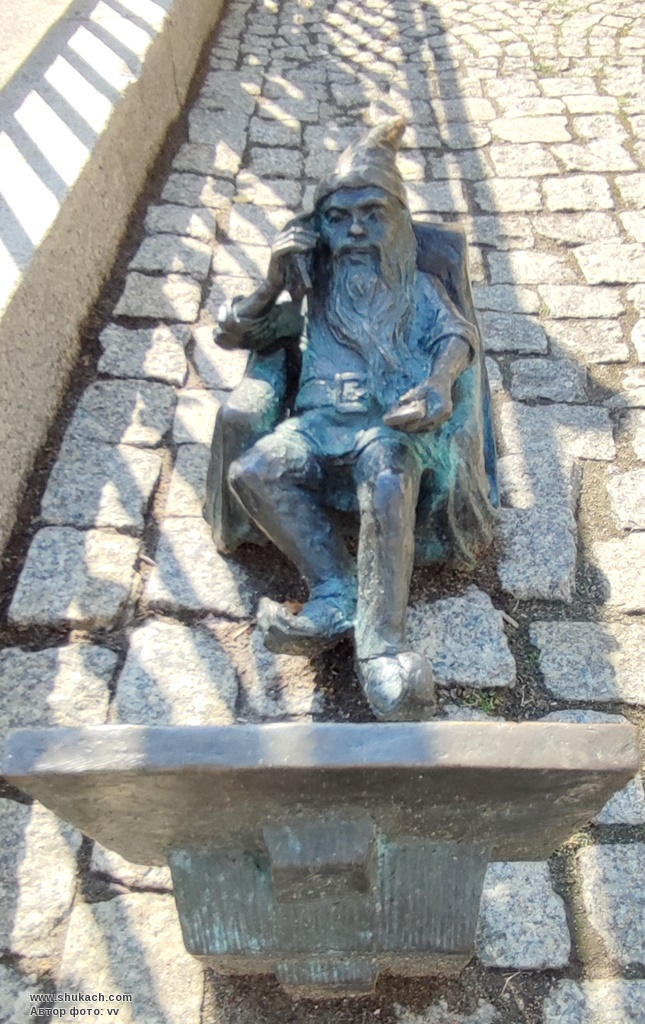 Krasnal Dialogomir - дивиться телевізор та розмовляє по мобільному на площі Plac Solny у Вроцлаві.
