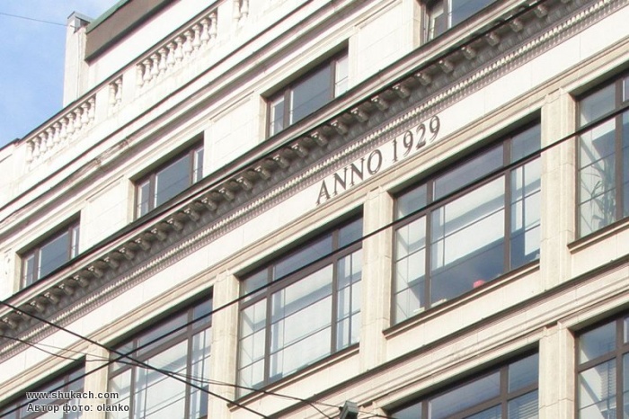 П’ятиповерховий прибутковий будинок в стилі функціоналізму зведений у 1929-1931 роках за проектом архітектора Ейжена Лаубе. Прості форми, великі прямокутні вікна. На самому верху є також елементи неокласицизму – невеликий декор під карнизом та балюстрада. Над балюстрадою є ще один поверх, якого майже не видно. Він був прибудований до будівлі у 2000 році. Пам’ятка архітектури.