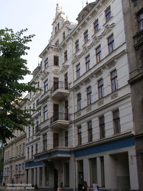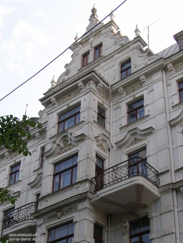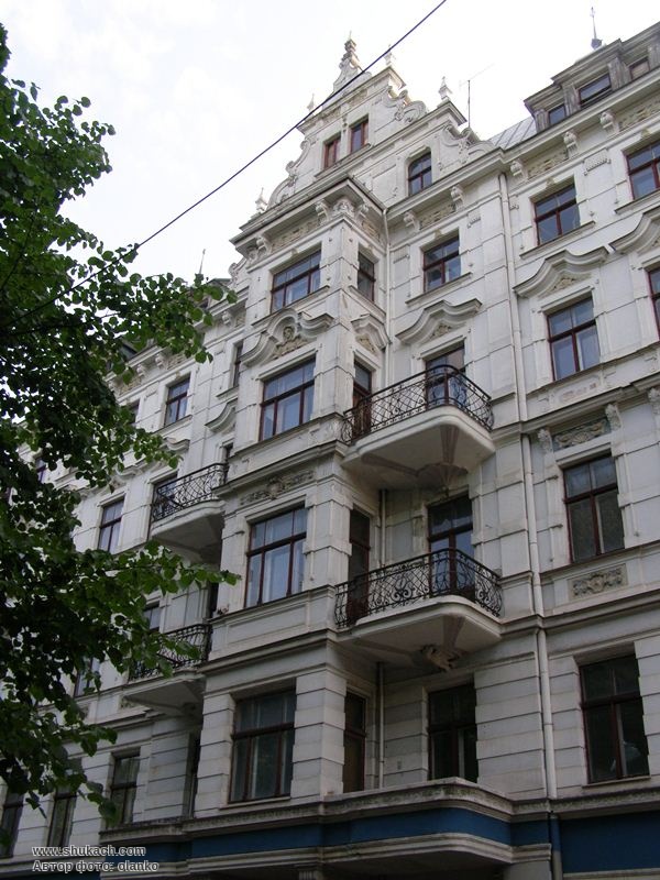 П’ятиповерховий прибутковий будинок зведений у 1902 році за проектом архітектора Константіна Пекшенса. Фасад прикрашає чотириповерховий прямокутний еркер, до якого на трьох рівнях примикають балкони з кованими гратами. В центрі фасаду скульптурна вставка з жіночою голівкою. Пам’ятка архітектури.