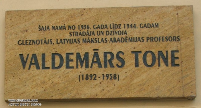 Встановлена на честь латиського художника Валдемара Тоне, який у 1936-1944 роках жив і працював в цьому будинку.