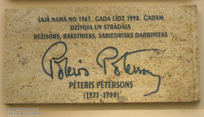 Встановлена на честь латиського театрального режисера, драматурга і публіциста Петеріса Петерсона, який у 1961-1998 роках жив і працював в цьому будинку.
