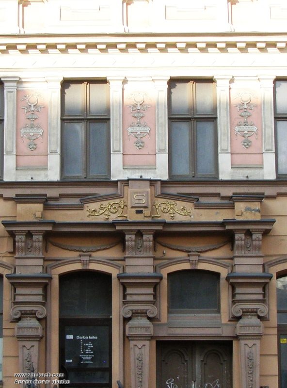 П’ятиповерховий прибутковий будинок зведений у 1880 році за проектом архітектора Яніса-Фрідріха Бауманіса. Фасад прикрашений різноманітною ліпниною – рельєфними вставками, вінками, гірляндами. Вхідний портал виділений трьома колонами з ліпниною та вензелем власника «S». Вікна прикрашені сандриками – на третьому поверсі трикутними, на четвертому лучковими. Пам’ятка архітектури.