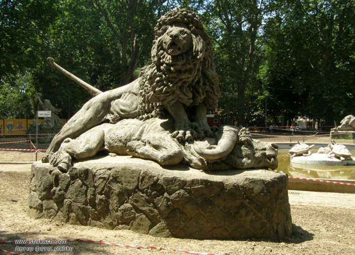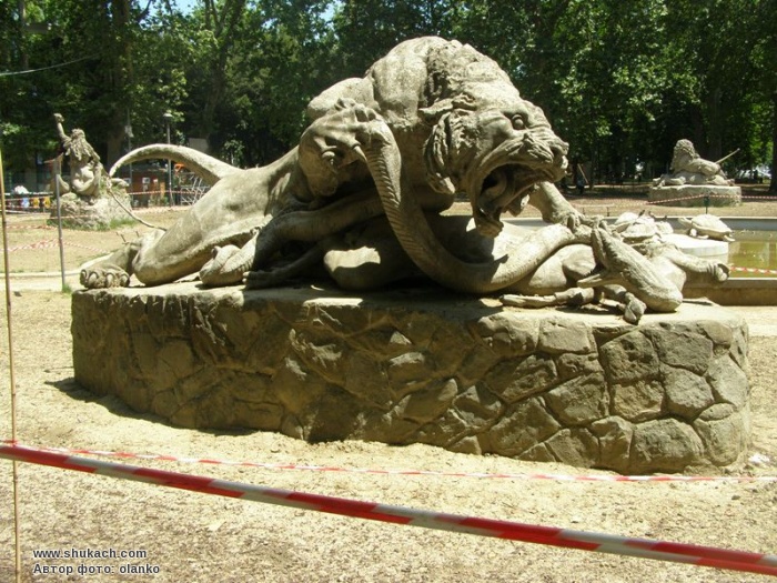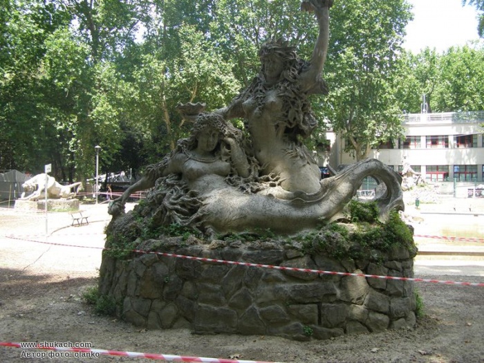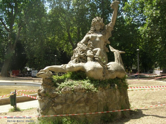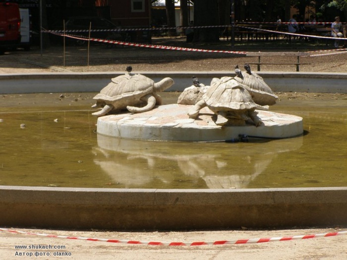 В центрі фонтану – скульптури черепах, а навколо – дві скульптури русалок, скульптури лева і левиці. Скульптури було створено у 1888 році місцевим художником Дієго Сарті, відомим багатьма витворами мистецтва. Вони були створені з бетону для Національної художньої виставки 1888 року, і хоча їх передбачалося розібрати після виставки, народне визнання призвело до того, що вони були збережені як частина історії міста.