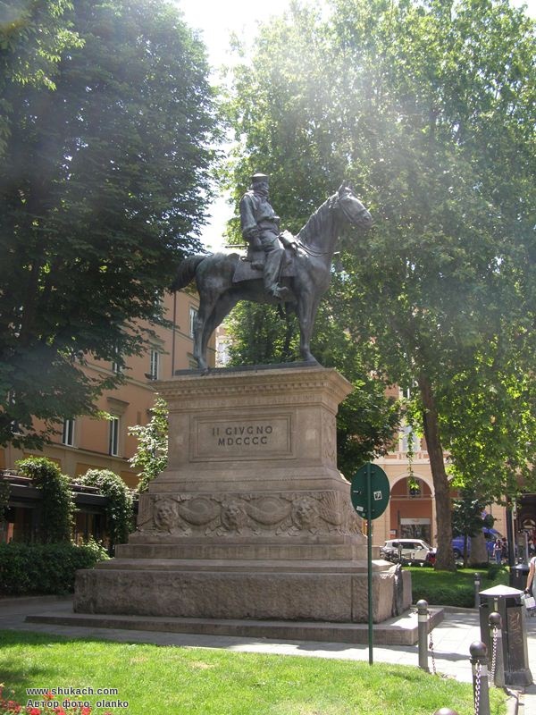 Бронзова кінна фігура встановлена на гранітному постаменті. Автор – скульптор Арнальдо Дзоккі. Роботу відлили на ливарному заводі Бруно в Римі, а будівництво основи з граніту Бавено було доручено болонській фірмі Давиде Вентурі. Урочисте відкриття пам’ятника відбулось 7 липня 1900 року.