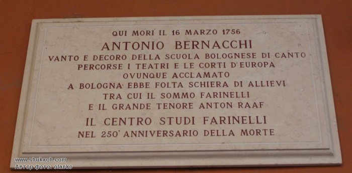 В цьому будинку жив і 16 березня 1756 року помер Антоніо Бернаккі, італійський співак, композитор і педагог. Дошка встановлена у 2006 році, в 250-ту річницю смерті митця.