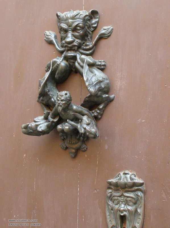 Привертає увагу двірний молоток - це цілий витвір мистецтва зі своїм сюжетом.