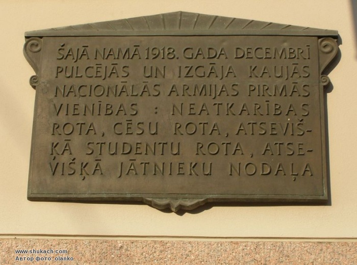 В цьому будинку у грудні 1918 року розміщувались перші військові формування незалежної Латвії.