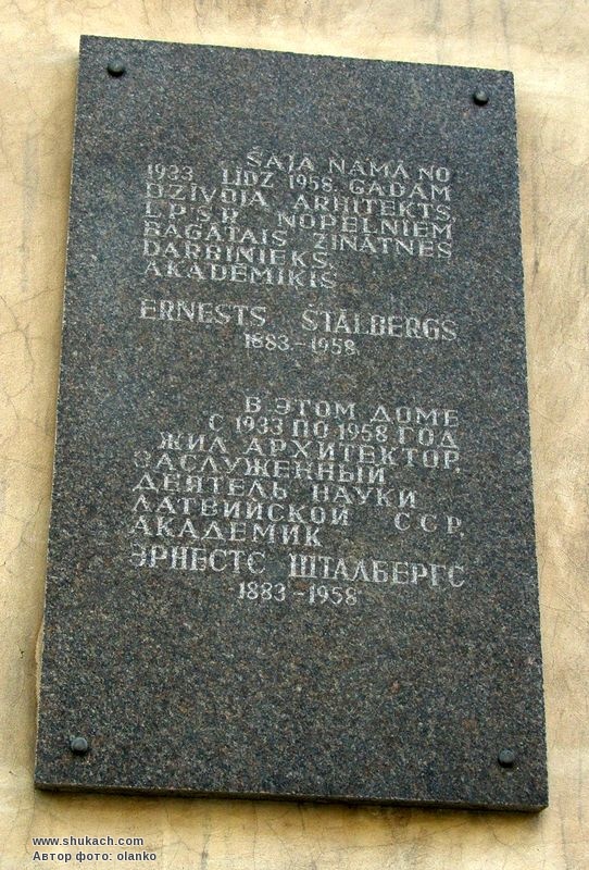 Встановлена на честь латиського архітектора Ернестса Шталбергса, який жив в цьому будинку у 1933-1958 роках.