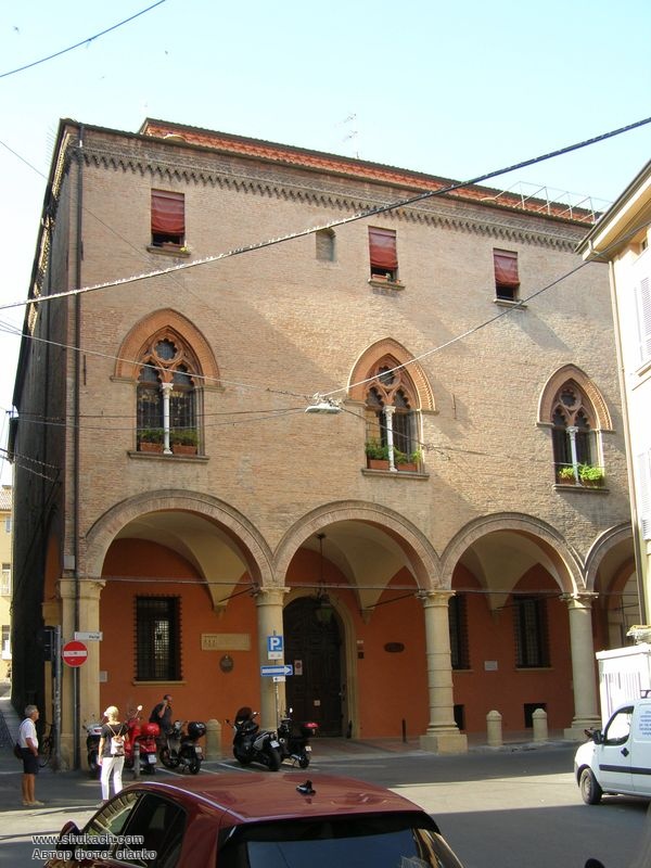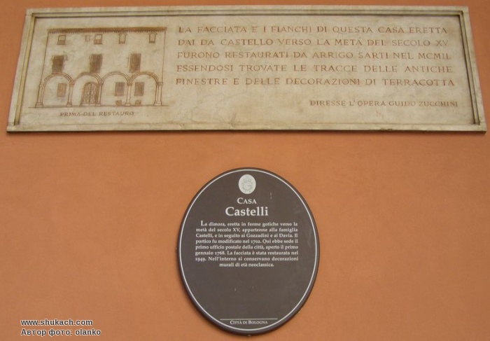 Резиденція, побудована у готичному стилі в середині 15 століття, належала родині Кастеллі, а потім родинам Гоззадіні та Давія. Портик був перебудований у 1702 році. Тут була перша в місті пошта, що відкрилася 1 січня 1768 року. Фасад було відреставровано у 1949 році. В інтер'єрі збереглися розписи епохи неокласицизму. На фасаді меморіальна дошка з текстом: «Фасад і бокові сторони цього будинку, зведеного у 15-му столітті, відреставровані Арріго Сарті у 1949 році. При цьому були виявлені сліди древніх вікон і теракотові прикраси».