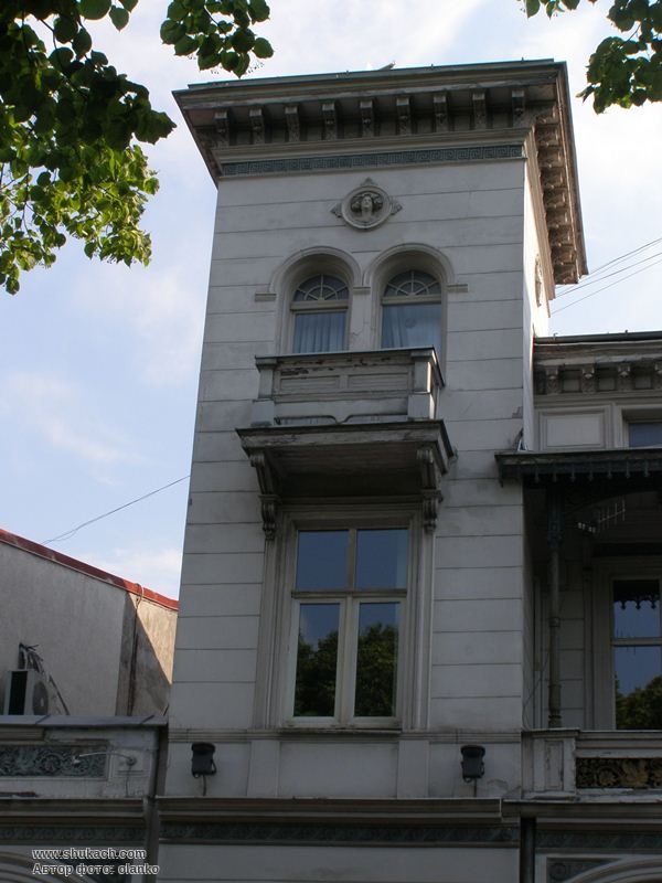 Деревяна двоповерхова будівля зведена у 1870 році за проектом архітектора Йохана Даніеля Фельско. Фасад має балкон, прикрашений колонами з різьбленням. На лівій вежці з балкончиком – скульптурне зображення голови Діоніса у вінку з виноградного листя.
