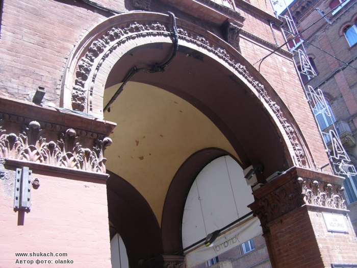 Шестиповерховий прибутковий будинок зведений на початку 20-го століття. Перший поверх відданий під крамниці і офіси. Портик з квадратними цегляними колонами прикрашений теракотовими панелями у стилі модерн. Вікна також мають теракотове обрамлення.