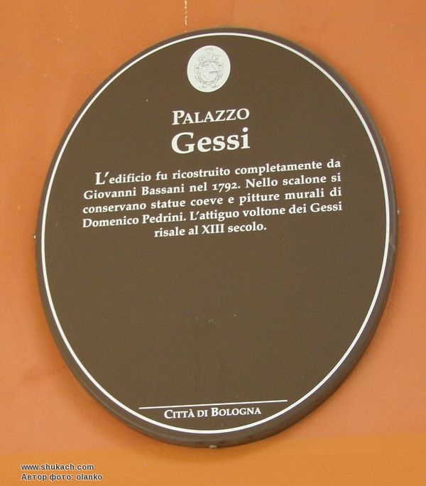 Перший будинок на цьому місці був зведений у 13-му столітті. Будівлю було повністю перебудовано Джованні Бассані у 1792 році. Портик має гранчасті колони з капітелями коринфського ордеру, вікна другого поверху – кам’яне обрамлення з трикутними і лучковими сандриками. На сходах збереглися сучасні статуї та фрески Доменіко Педріні. Зараз в палаццо розміщений готель «Палас».