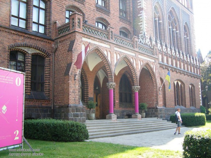 На початку XX століття за рішенням Ризького Біржового комітету було закладено будинок для комерційного училища. Проект будівлі виконав відомий архітектор Вільгельм Бокслаф у улюбленому стилі тодішнього ризького градоначальника Джорджа Армітстеда – неоготики. Будівництво велося з 1902 до 1904 року. Будівельний майданчик був зручним та сухим, фундамент був поглиблений лише на 2,5 метра.