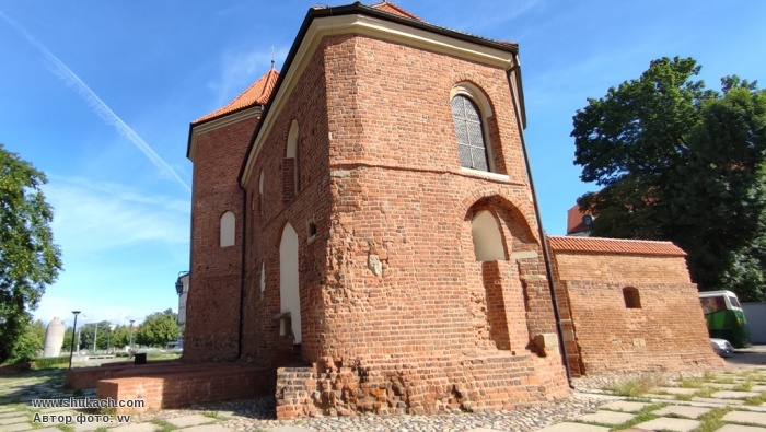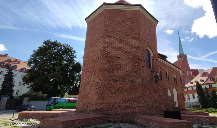 Церква св. Мартіна у Вроцлаві (Martinskirche) Спочатку це була замкова каплиця княжої резиденції в Острові Тумському. Сучасна будівля була зведена на старому фундаменті на початку XIV ст., перебудована в XV ст., зруйнована в 1945 р. і відбудована в 1958-1968 рр. Збудована з каменю та цегли, вона складається з нави, встановленої на шестикутнику, з неправильно витягнутою вівтарницею, прикрашеною в інтер’єрі рядом глухих кам’яних аркад з багатопрофільованими жалюзі та різьбленим узором.