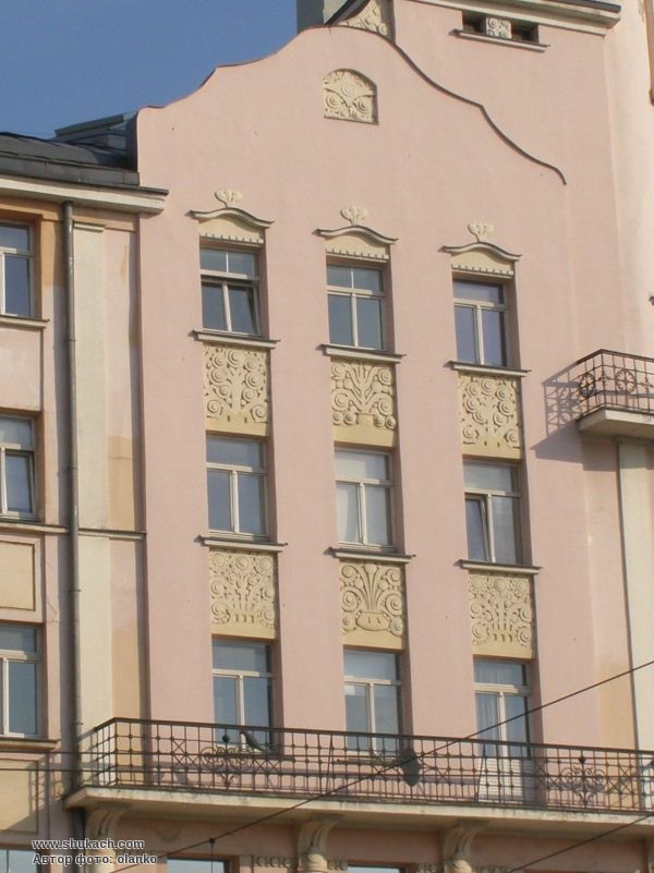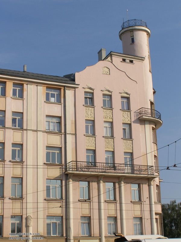 Шестиповерховий прибутковий будинок зведений у 1911 році за проектом архітекторів Ейжена Лаубе і Августа Мальвесса. Перший поверх відданий під крамниці і офіси. Фасад будинку прикрашають рельєфні вставки з рослинними мотивами, а його роги – декоративні вежі. Пам’ятка архітектури національного значення.