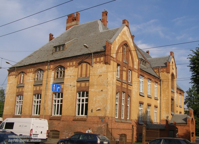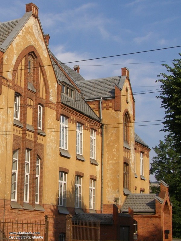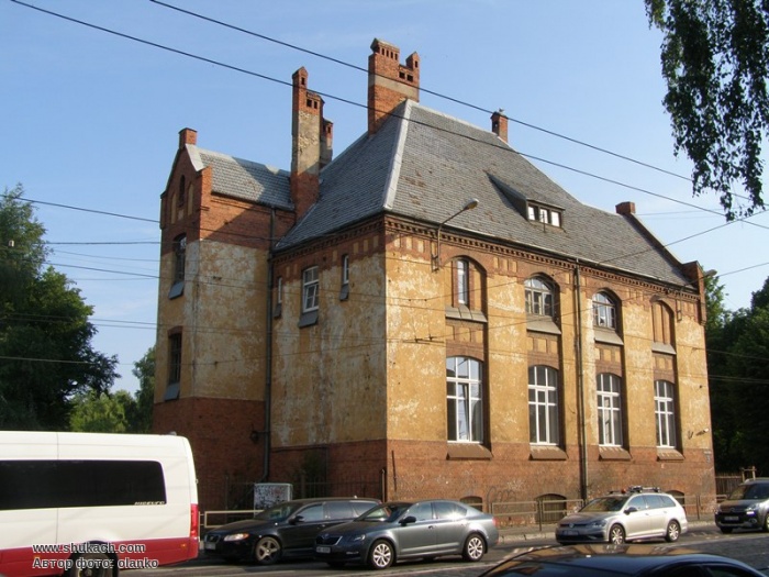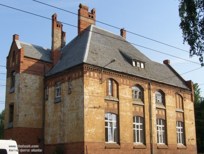 Двоповерхова будівля на високому цокольному поверсі зведена у 1919 році за проектом архітектора Р.Шмелінга. Оформлення фасадів поєднує цегляні і оштукатурені поверхні. Пам’ятка архітектури.
