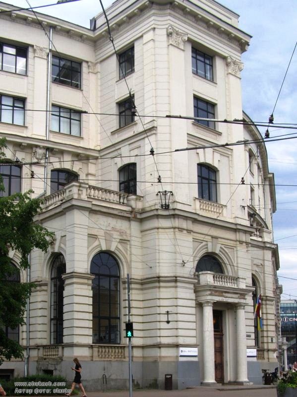 В цьому будинку свого часу була розміщена перша радіостанція незалежної Латвії, а під час німецької окупації працював головний радіопередавач райхскомісаріату Остланд. Під час Другої світової війни будівля повністю згоріла. Після реставрації радянська влада розмістила у ній військове артилерійське училище берегової оборони. Зараз тут розміщуються факультети економіки і управління та історії і філософії Латвійського університету і університетська академічна бібліотека.