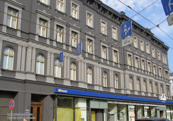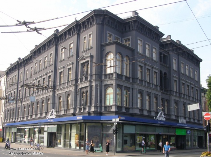 Триповерховий прибутковий будинок був зведений у 1875 році за проектом архітектора Генріха Карла Шеєля. Другий і третій поверх будинку було поділено на просторі квартири. Вже в 1910 році цей будинок купила Ризька кредитно-ощадна асоціація домовласників, і будинок став їх офісом, але в будинку залишилися деякі квартири. У 1912 році четвертий поверх було додано до будівлі у стилі нео-ренесансу (проект архітектора Мартіна Нукши).