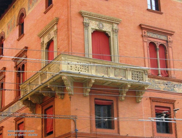 Середньовічний будинок був реконструйований у 1892 році за проектом архітектора Аугусто Сезанна. Це був перший в місті будинок, призначений як для офісів, так і для житла. Під час проектування архітектор надихався зразками архітектури Відродження. Флорентійські вікна, розписи із зображенням середньовічних костюмів, вишукані балкони, теракотові карнизи і обрамлення вікон прикрашають фасади будинку.