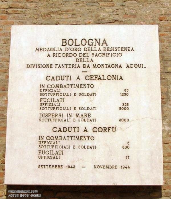 м. Болонья. Меморіальна дошка загиблим воїнам дивізії «Акві».
