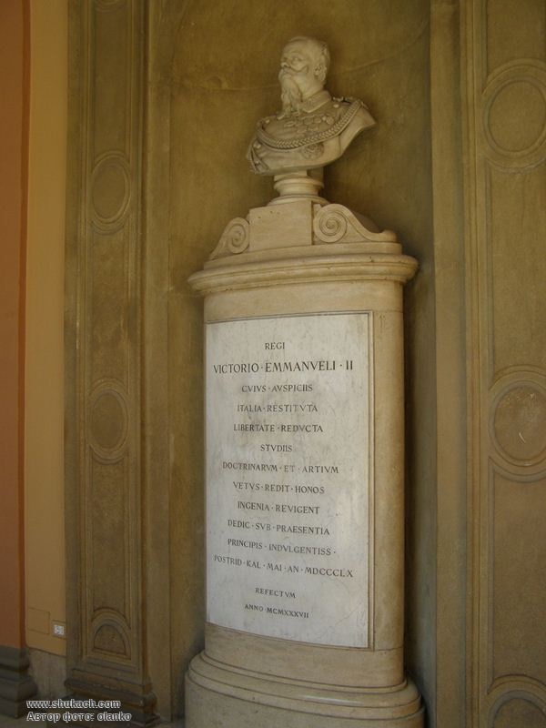 Встановлене у 1937 році у коридорі університету на честь короля Італії Віктора Еммануїла ІІ. Погруддя з білого мармуру на овальному постаменті.