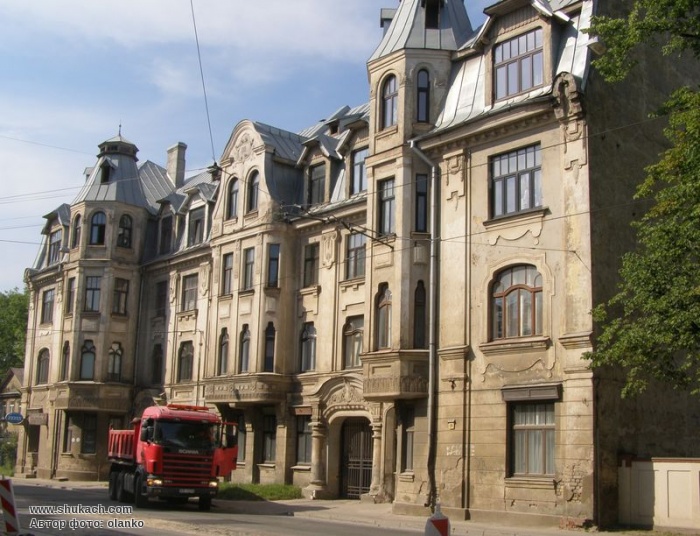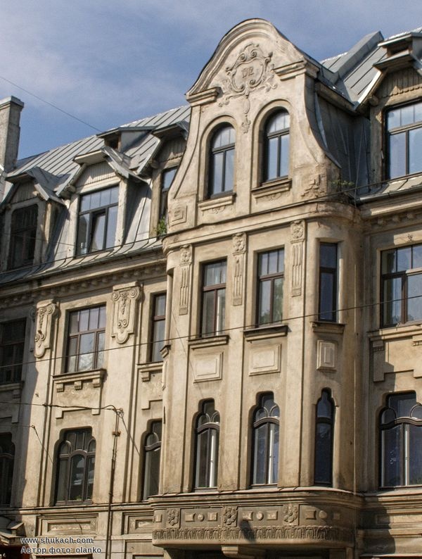 Триповерховий прибутковий будинок в стилі модерн з мансардним поверхом і двома вежами був зведений у 1912 році за проектом архітектора А.Ванага. Фасад прикрашений рельєфними вставками з рослинними мотивами. Вікна мають різноманітну складну конфігурацію. Вхідний портал прикрашають колони і ліпні картуші. Центральний еркер завершує картуш з датою будівництва. Пам’ятка архітектури.