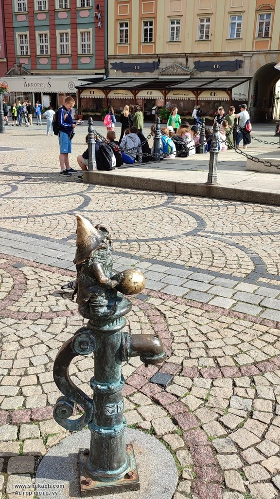 Гном Оrzezwiacz знаходиться на ринковій площі на північному фасаді. А його колега гном Zraszacz осідлав колонку на південній стороні ринку. Деякі туристи думають що це найбільш корисні гноми міста, особливо жарким літом.