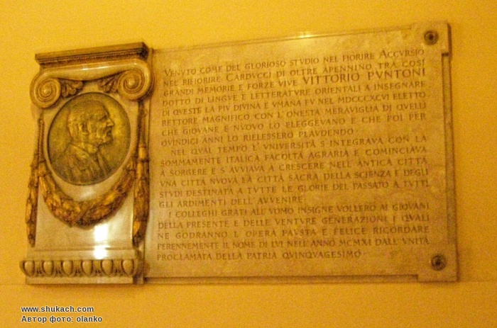 Встановлена у коридорі університету на честь італійського філолога, лінгвіста, академіка і політика Вітторіо Пунтоні. На протязі 21 року він був ректором Болонського університету. Бронзовий медальйон на мармуровій дошці.