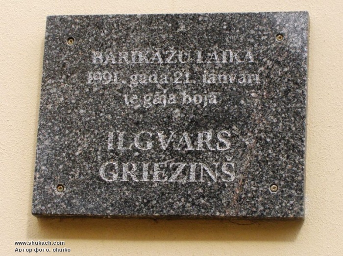 Встановлена на місці загибелі Ілгвара Грієзіньша. Це трапилось 21 січня 1991 року, наступного дня після великої бійні. Ільгвар вирушив до Верховної Ради, щоб подати заявку як перекладач-доброволець — шукали людей, які знають англійську мову, для передачі новин про події у закордонні ЗМІ. Він був в темряві випадково придавлений до стіни під час установки бетонного блока барикади.
