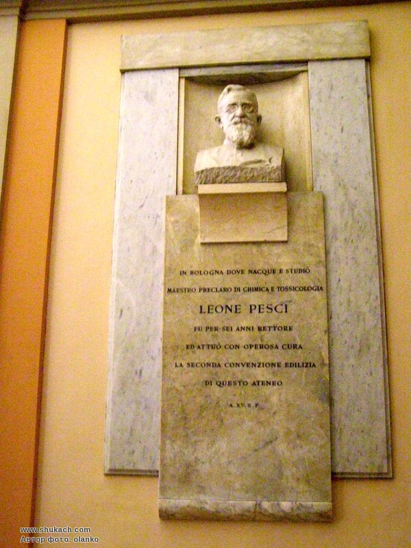 Встановлена у коридорі університету на честь вченого-хіміка, ректора університету (1911-1917) Леоне Пеши. Погруддя з білого мармуру на кам’яній дошці.