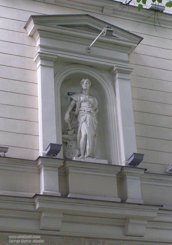 Побудований у реальному училищі аула (актовий зал) з балконом для музикантів аналогічний до нереалізованої ідеї проекту Малої гільдії. Для фасаду справжньої школи було обрано стиль неоренесансу.