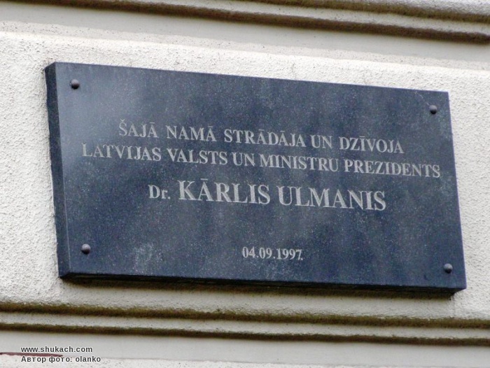 Карліс Улманіс, коли був міністром закордонних справ, працював і жив в цій будівлі. Дошка урочисто відкрита 4 вересня 1997 року, у 120-ту річницю з дня його народження.