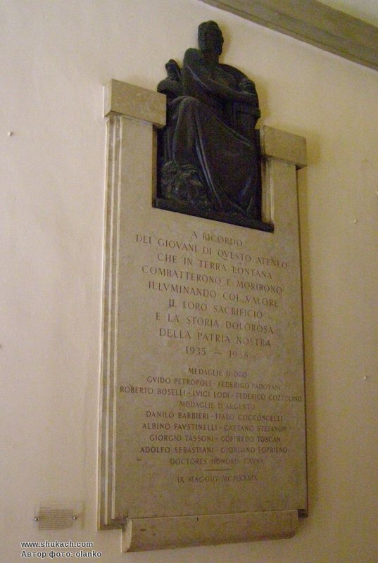 Встановлена на честь випускників, студентів і працівників Болонського університету, які загинули в ході бойових дій у Східній Африці у 1935-1938 роках. Бронзовий барельєф, врізаний в мармурову дошку. Урочисто відкрита 9 травня 1939 року.