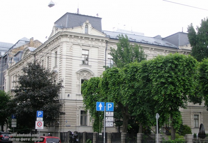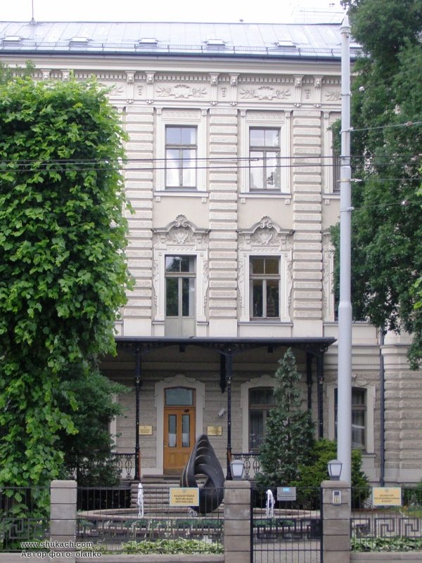 Триповерховий житловий будинок зведений у 1876 році за проектом архітектора Роберта Пфлуга. У 1908 році проведена реконструкція будинку під керівництвом архітектора Пауля Мандельштама. Будинок має фасади з горизонтальним рустом. Вікна другого поверху прикрашені жіночими барельєфами і фігурними сандриками з ліпними раковинами; карнизи – лев’ячими маскаронами і ліпниною рослинних мотивів. Наріжжя завершує декоративна квадратна вежа. Пам’ятка архітектури. Зараз тут розміщена амбасада Казахстану.