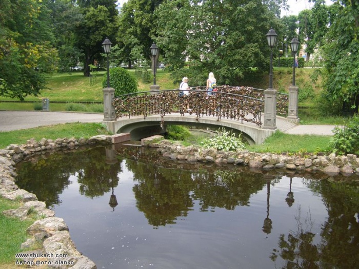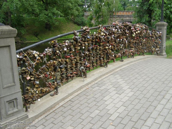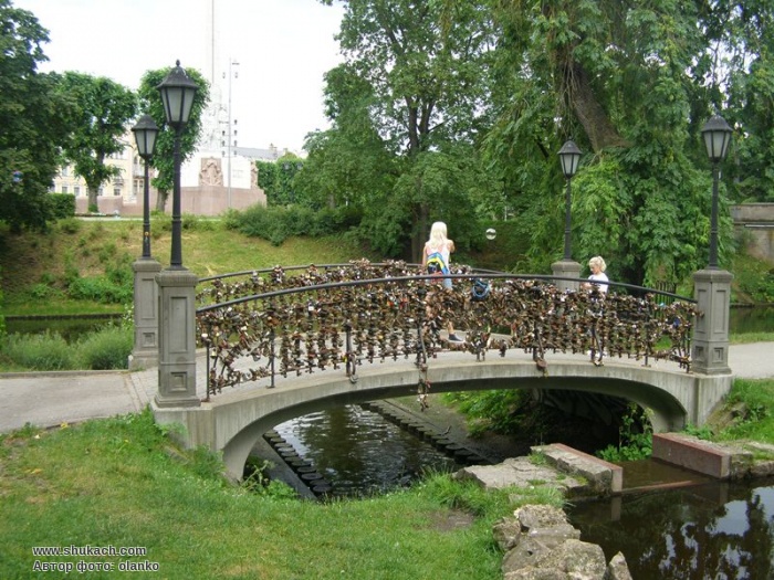 Пішохідний міст був збудований у 2001 році. Міст популярний серед молодят, які вішають замки на поручні мосту.