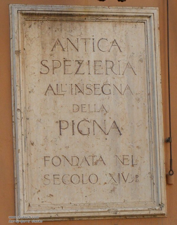 Меморіальна дошка свідчить, що аптека Пінья (зараз має назву «Сан-Паоло», бо розташована поряд з храмом святого Павла) була заснована у 14-му році.
