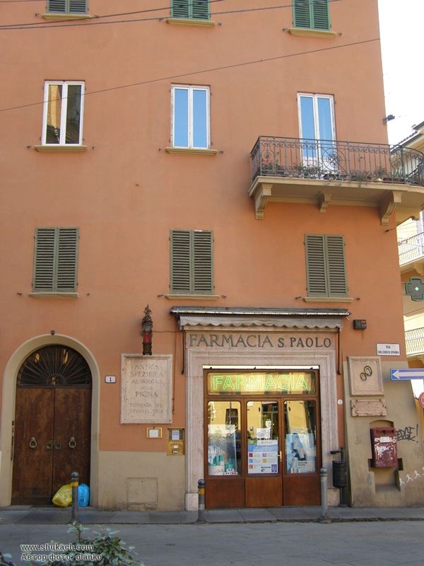 м. Болонья. Меморіальна дошка аптеці Пінья.