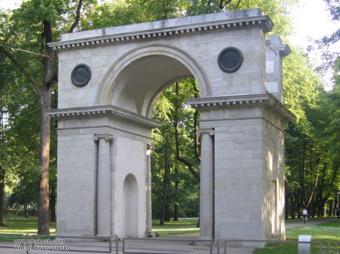 Арка має висоту 10 метрів та ширину майже 10 метрів. Прохід шириною 4 метри став занадто вузьким для міста, що зростає. Але як можна без поважної причини переносити пам'ятник цареві в інше місце? На початку 20-го століття з’явилась вагома причина – у 1904 році на цьому місці побудували нову залізничну гілку та міст. Арку частинами перевезли головною вулицею далі від центру міста на кінних візках і перебудували там. Але й в цьому місці вона заважала розбудові міста, бо головною вулицею тепер теж їздили автомобілі, і 1936 року арку знову розібрали і перенесли до парку Вієстура. У 2018 році тріумфальна арка була відреставрована.