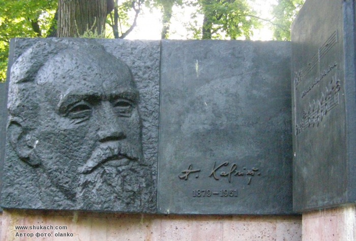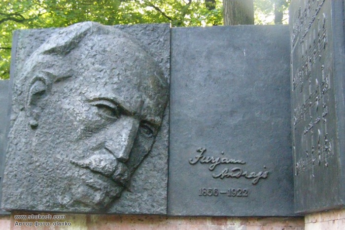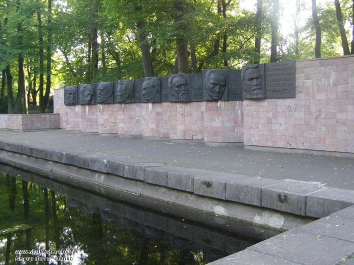Завершує ряд портретів пам'ятний знак Свята пісні - бронзовий вінок із
