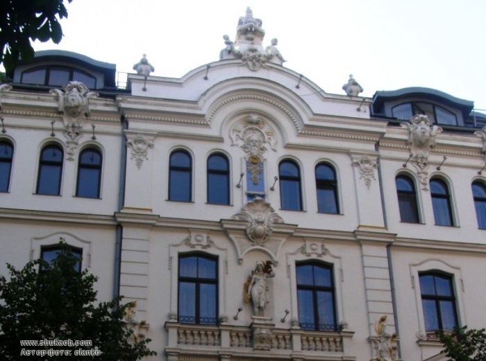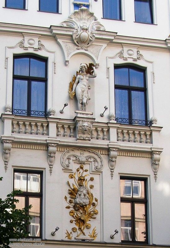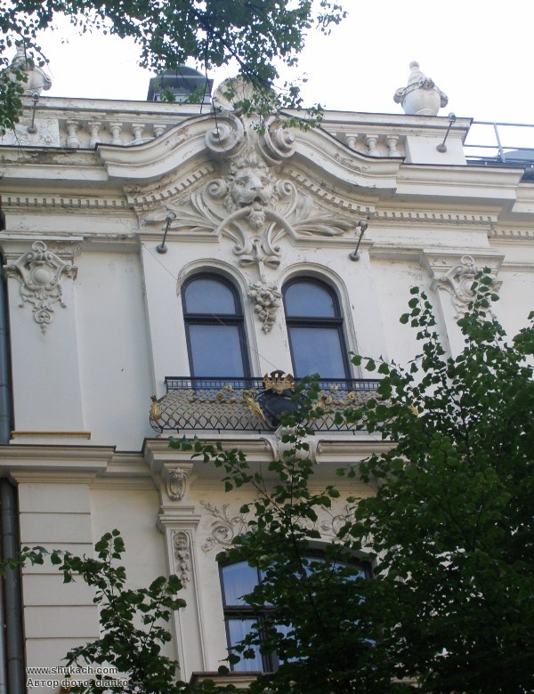 Чотириповерховий прибутковий будинок в еклектичному стилі зведений у 1900 році за проектом архітектора Рудольфа Генріха фон Цирквіца. Перший поверх рустований. Фасад прикрашений скульптурами, маскаронами, балюстрадами, різноманітною дрібною ліпниною з позолотою. В центрі фасаду під дахом – рельєфна позолочена дата завершення будівництва.