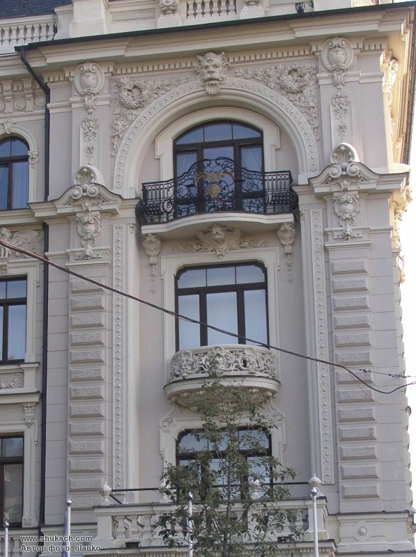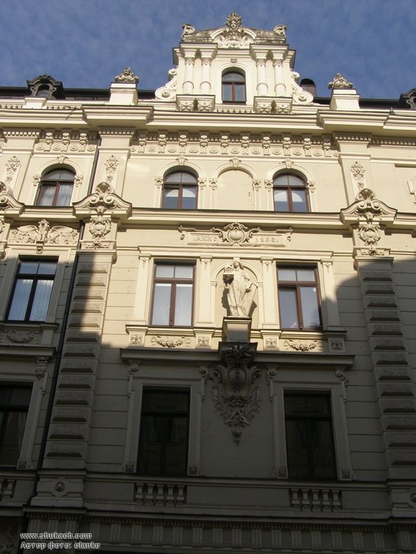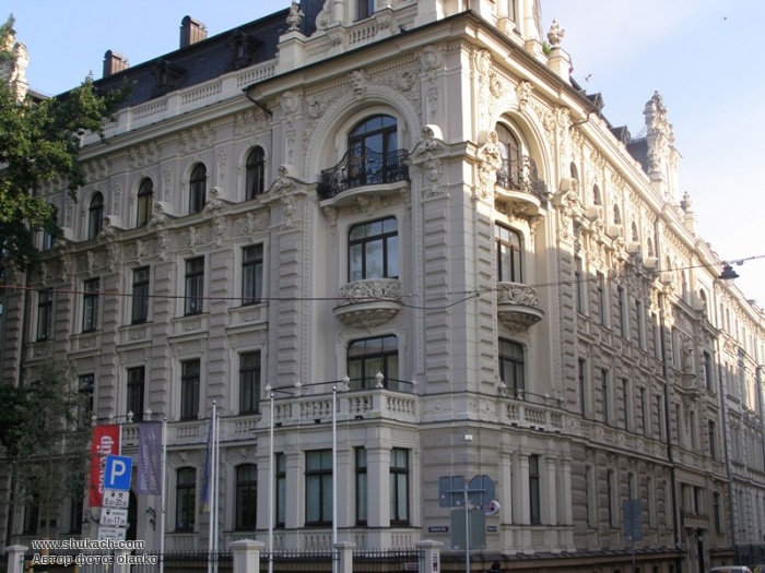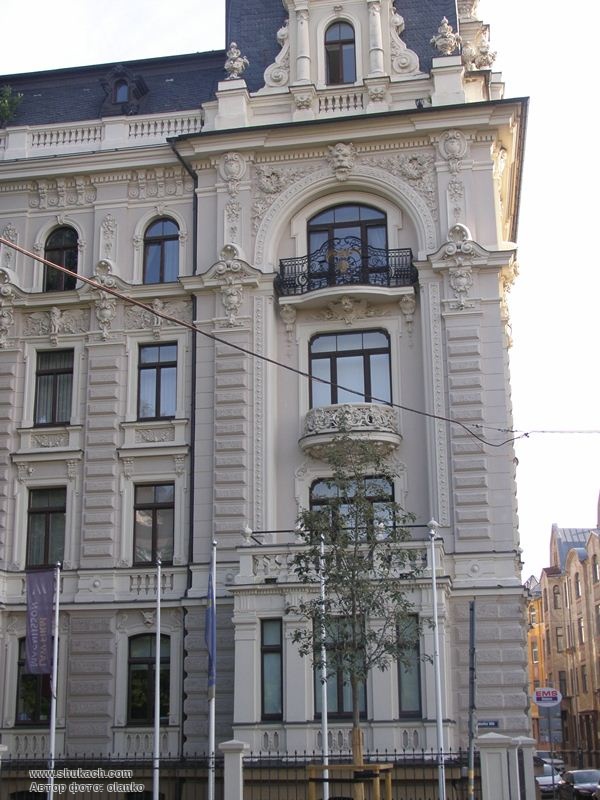 Чотириповерховий прибутковий будинок в еклектичному стилі на розі вулиць Елізабетес і Віландес зведений у 1899 році за проектом архітектора Рудольфа Генріха фон Цирквіца. Фасади багато прикрашені різноманітною ліпниною – маскаронами, гірляндами, вінками. Балкони мають ажурне кам’яне або коване огородження. Наріжжя завершує велика вежа з вікнами у пишному скульптурному обрамленні, балкончиками і флюгером. Дах вкритий «лускою». В центрі фасаду по вул. Віландес – алегоричне зображення архітектури – жіноча скульптура з макетом будинку в руці, рулоном креслень і рельєфним зображенням будівельних інструментів під ногами. Над скульптурою – рельєфна дата завершення будівництва. Пам’ятка архітектури.