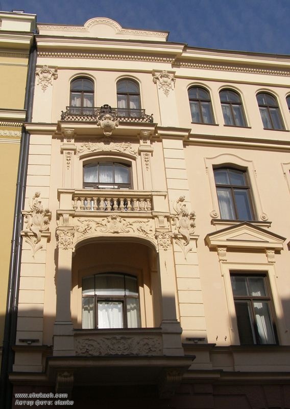 Чотириповерховий прибутковий будинок в еклектичному стилі зведений у 1899 році за проектом архітектора Рудольфа Генріха фон Цирквіца. Перший поверх рустований. Бічні ризаліти підкреслені балконами і ліпними картушами з квітковими мотивами.