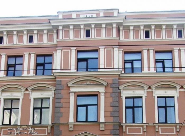 Чотириповерховий прибутковий будинок в стилі неокласицизму з цокольним поверхом зведений у 1880 році. Перший поверх рустований. Фасад прикрашений профільованими пілястрами, ліпниною рослинних мотивів. Вікна другого поверху мають трикутні сандрики, а третього – лучкові на консолях. Над вхідним порталом – єдиний балкон з кам’яною балюстрадою.