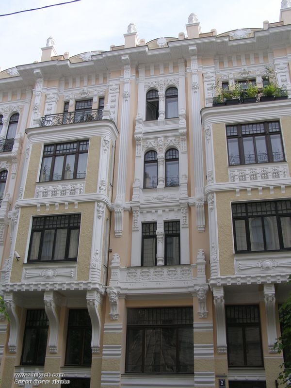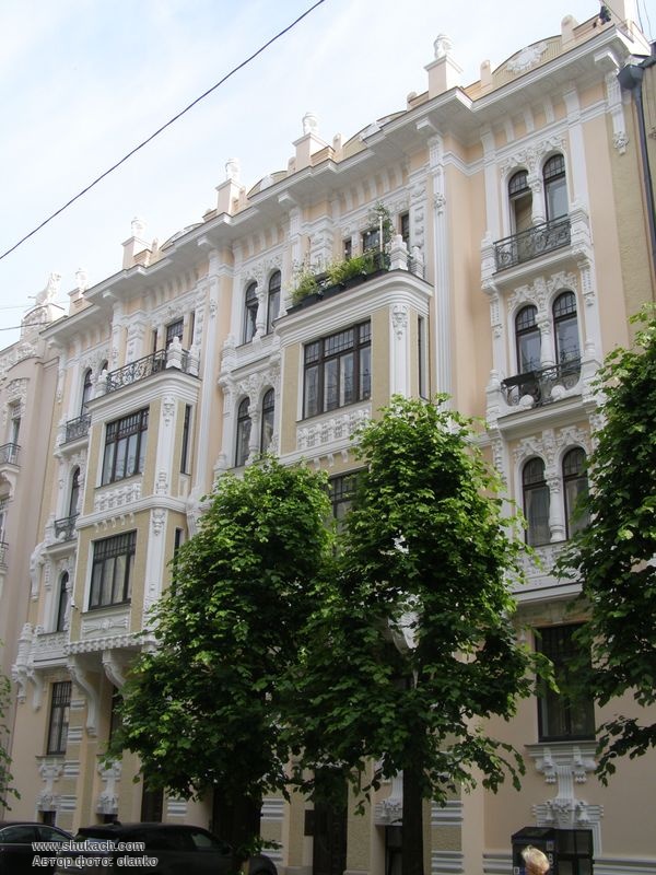 Чотириповерховий прибутковий будинок з цокольним поверхом зведений у 1906 році за проектом архітектора Михаїла Ейзенштейна на замовлення багатого ризького домовласника Володимира Богуславського. Пізніше перейшов у власність до пані Лубе. Будинок відрізняє помірна декоративна складова і підкреслена вертикальність; також заслуговує на увагу параметрична гра архітектора з арочними зображеннями та віконними отворами. Фасад прикрашають два прямокутні еркери. Пам’ятка архітектури національного значення.