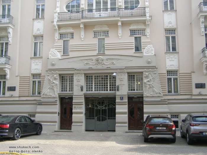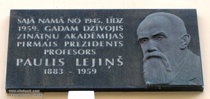 Встановлена на честь видатного латвійського вченого-біолога, президента академії наук Латвії П.Я.Леїньша. Він жив в цьому будинку у 1945-1959 роках. Бронзовий барельєфний портрет на гранітній дошці.