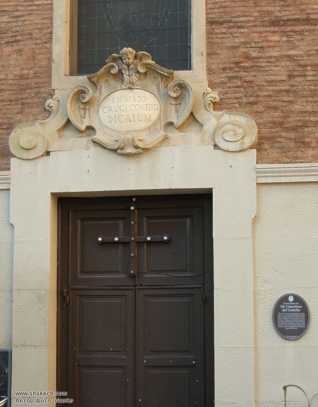 Зведений в 1516 році Братством Розп'яття, що почитало образ, написаний на міських стінах в XV столітті (нині на головному престолі), він був перебудований в 1762 році Антоніо Гамберіні (1782-88), ліпнина Луїджі Аккісті та фрески Фламініо Міноцці. У ризниці знаходиться Аддолората скульптора Анджело Г. Піо (1730).