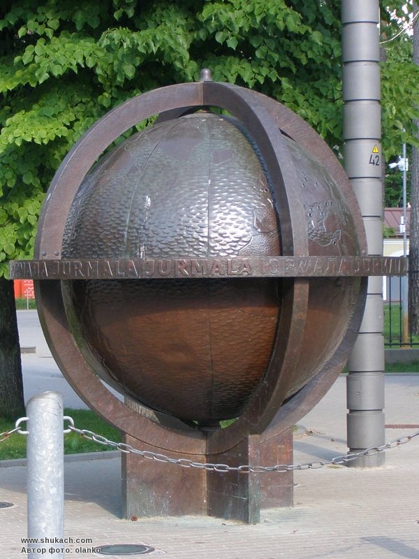 Глобус, діаметр якого становить два метри, вважається найбільшим глобусом у Латвії. Він знаходиться в Юрмалі, на перетині вулиць Турайда та Йомас, неподалік від концертної зали «Дзінтарі». Об'єкт був встановлений на початку 70-х років минулого століття, тому у сприйнятті багатьох гостей міста скульптура є символом того часу, що підтверджується і територіями країн, зазначеними на карті земної кулі. Міста-побратими Юрмали з 1970-х років також відзначені на карті світлими кружками. У 2003 році було проведено роботи з реконструкції.